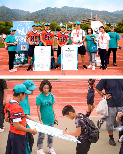 Su primera acción importante tuvo lugar en el famoso Koshien Bowl —el campeonato anual de fútbol americano universitario de Japón—, donde los voluntarios de DFW distribuyeron miles de folletos de la Verdad Sobre las Drogas. Los visitantes les agradecieron diciendo: “Protejamos juntos el fútbol americano”.